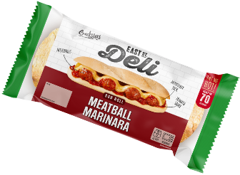 Succulent meatballs, smothered in a rich tomato sauce and buttery Monterey Jack cheese combine perfectly to create a sensational sub. Ready in just 70 seconds you won’t need to wait long to enjoy this delectable delight.